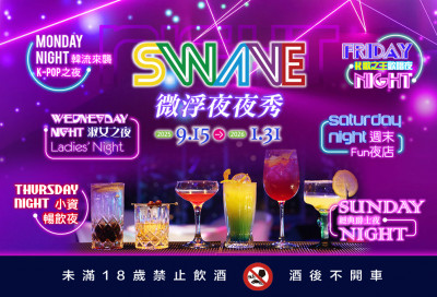 狂歡不停歇,夜夜都有驚喜!SWAVE 微浮酒吧精彩推出【微浮夜夜秀】,9月15日至2026年1月 31日,每週六天的主題之夜輪番登場,帶給您專屬於澎湖的夜晚新體驗。