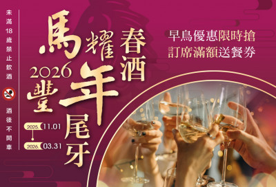 歲末齊聚,共迎馬年!西式自助餐訂席人數滿額最高享81折優惠,加碼升等獨立包廂空間;中式星級宴席十人份NT$8,880元起,訂席滿桌再加贈烤鴨饗宴餐券等!