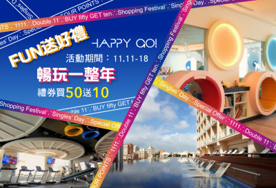 專屬的雙11優惠,喜歡運動玩樂的您有福了! 5樓休閒中心自11月11日至11月18日推出購買50張休閒活動遊憩區禮券套組,僅需 NT$10,500元(原價NT$15,000),再加碼贈「單次使用貴賓券」10張,讓您玩得開心又划算!