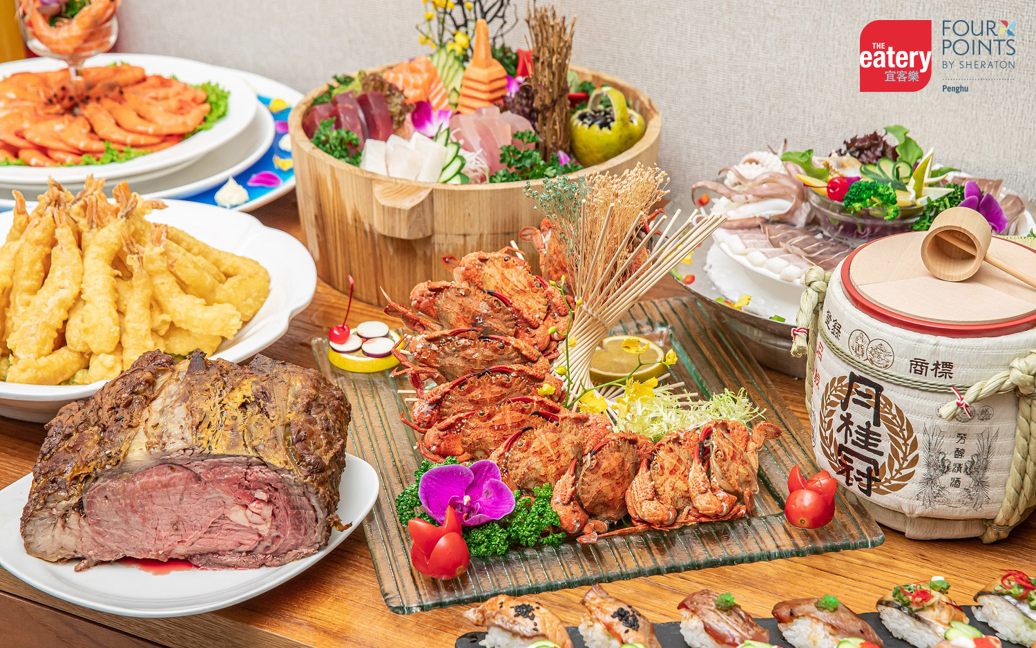 匯聚世界各國經典美食與澎湖在地特色料理,匠心呈現澎湃豐盛的饗宴。從現切爐烤牛排、澎湖在地海鮮湯、現燙牛肉湯、新鮮肥美的時令蝦蟹、到日式刺身、手作握壽司與手卷,每一口都是五星級的美味享受,更提供全澎湖唯一的月桂冠清酒無限暢飲,還有沁涼啤酒、精選紅白酒、現打果汁等飲品佐餐,餐後還有 Mövenpick莫凡彼冰淇淋及多款手作甜品,讓您的尾牙春酒盛宴完美收官。