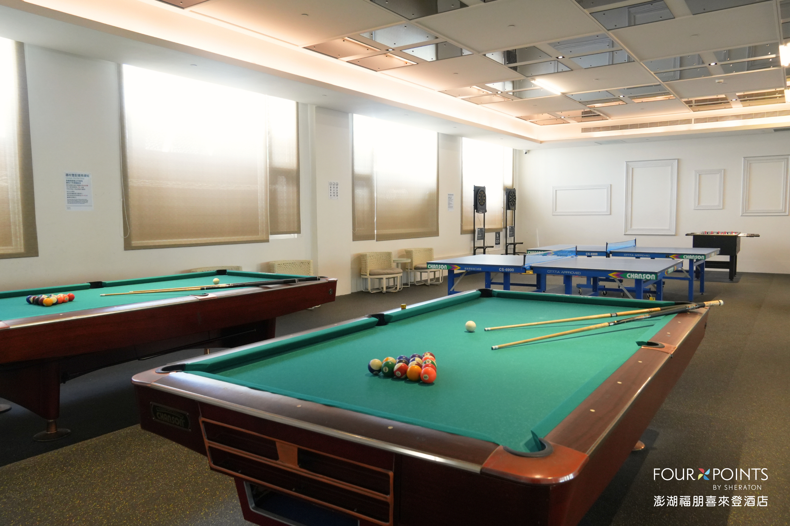 #運動遊戲區|撞球、桌球、飛鏢、手足球任你玩,樂趣不停歇。