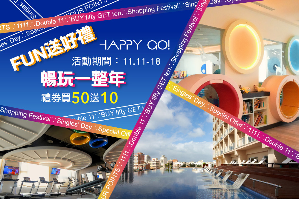 雙11一起來放鬆玩樂去!2025年11月11日至2025年11月18日於五樓休閒中心購買休閒活動遊憩區禮券50張,優惠NT$10,500元,再加碼贈「休閒活動遊憩區單次使用貴賓券」10張!讓您無論是與家人、朋友共度時光,還是獨自放鬆,皆能享受館內各項設施,讓優惠再加倍,玩樂不停!
