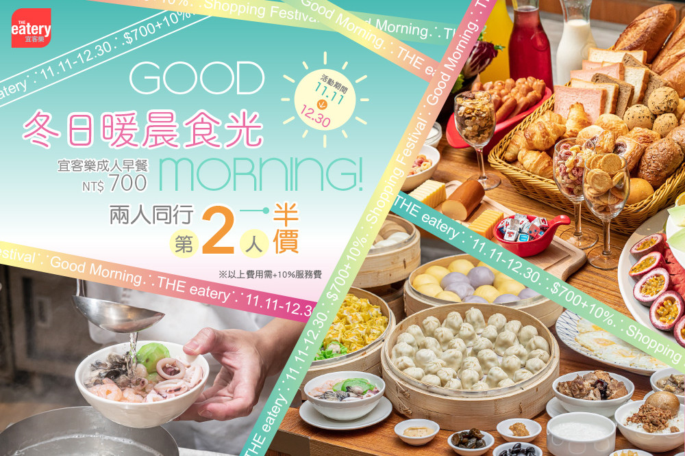 這個冬日,來一頓暖心早餐,為一天注入滿滿元氣!「宜客樂海港百匯自助早餐」推出暖晨食光優惠活動,於2025年11月11日至2025年12月30日,兩人同行,第二位半價,雙人優惠價NT$1,190元。無論現煮海鮮麵線、澎湖嚴選特色麵包、繽紛可口的各式料理,宜客樂海港百匯自助餐廳都為您準備好豐盛晨光饗宴,讓您在清晨盡享溫暖滋味。